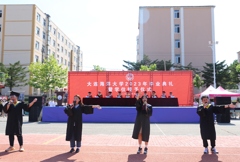 典礼期间,4名毕业生代表共同演唱了歌曲《凤凰花开的路口》,将现场的气氛再次推向高潮。