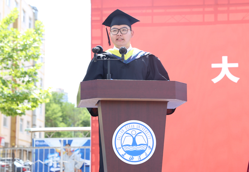 本科毕业生代表李思聪回顾了大学学习生活的收获和感悟,感谢母校老师的辛勤培养。并表示无论走到哪里,都将传承海纳百川的胸怀和行稳致远的底气,用最豪迈最稳重地步伐朝着美好的未来努力前进。