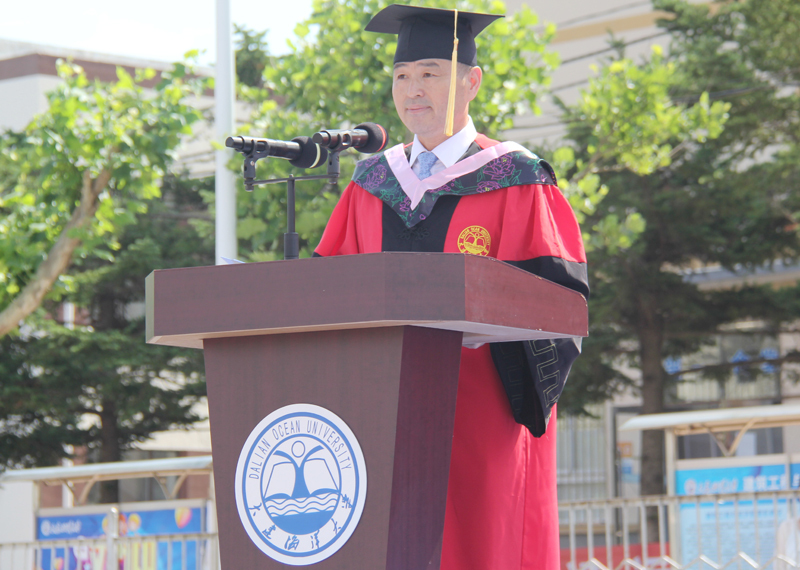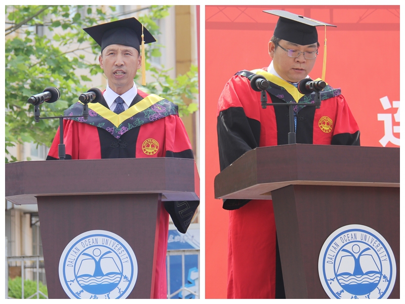 典礼在雄壮的国歌声中拉开帷幕。学院党委书记张强向全体2023届毕业生致以最热烈的祝贺,向辛勤培育学生的老师和家长表示了崇高的敬意,对于即将踏上新征程、开启新生活的毕业生,他提出三点希望,一是期待着学生们能志存高远,坚守家国情怀。要心怀祖国,以国为家,把小我融入祖国的大我之中,把个人的小蓝图融入祖国发展的大蓝图之中,把实现中华民族的伟大复兴作为自己的崇高责任;二是期待着学生们能脚踏实地,常怀宽容与感恩。要时刻保持谦和与宽容,传递着大海大“兼容并蓄、追求卓越”的气度与特质,学他人之优点,容他人之缺点,感恩父母、感恩老师、感恩母校、感恩社会;三是期待着学生们能勤学不辍,永远前行不止。要保持学习永远在路上的恒心,让增长点滴学识成为奋进前行的不竭动力与能量,实现奋进路上“男儿何不带吴钩,收取关山五十州”的雄心壮志。