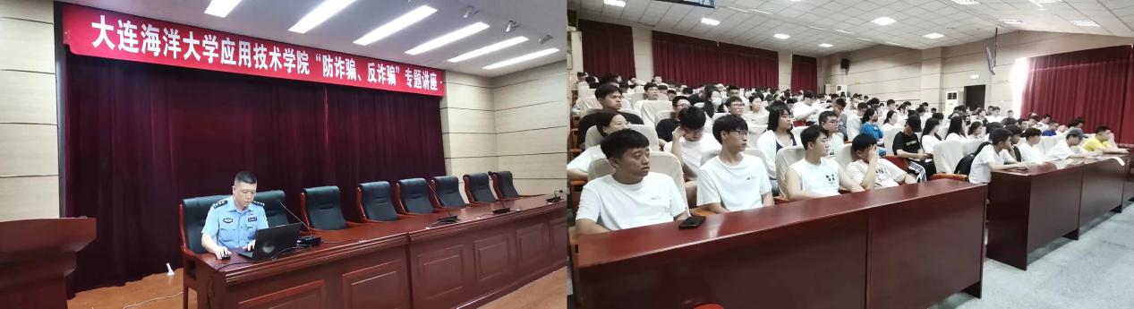一是举办“防诈骗、反诈骗”专题讲座。学院邀请了瓦房店市领下派出所民警陈壮举主讲,分期分批组织学生和教职员工开展集中宣传培训。陈壮举围绕电信网络诈骗简介,常遇的电信诈骗类型,如何防范电信诈骗三个方面进行讲座。针对大学生群体,常见的电信诈骗包括网络兼职诈骗、网络购物诈骗、助学金诈骗、贷款诈骗、冒充熟人诈骗,此外,中奖诈骗、盗刷诈骗、票务诈骗也时有发生。陈壮举结合典型案例告诫同学们要提高警惕,掌握破解办法。如何防范电信网络诈骗部分,陈壮举强调,要戒除贪恋,要不惧恐吓、要当面核实。同时以“六个一律”、“八个凡是”对待网络诈骗行为,如果及时发现了自己被骗,陈壮举也告诉了同学们了五条补救措施。