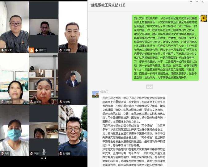 7月26日,建筑工程与经济管理系教师支部、学生支部分别组织召开专题会议,深入学习贯彻习近平总书记在文化传承发展座谈会上的重要讲话精神,并围绕“坚定文化自信,建设文化强国”进行专题研讨。各支部全体党员参会,会议由各支部书记主持。