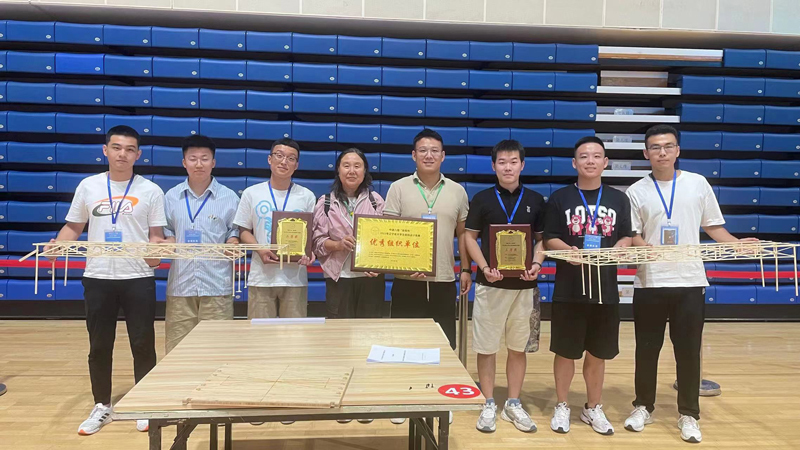 大学生结构设计竞赛是教育部认定的全国大学生九大赛事之一。本次竞赛赛题为《撞击荷载下变参数两跨四车道桥梁结构设计与制作》,选题以承受移动荷载和撞击荷载的桥梁为对象,检验大学生对土木工程结构知识的综合运用能力。我院师生在暑假30天左右的赛前集训过程中,反复进行模型制作和加载试验,不断优化完善作品,为参赛做了充分的准备工作。