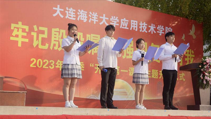 4名学生代表进行了国旗下的演讲,分享了他们走入乡村支教、探索创新创业、寻访辽宁“六地,参加社团活动等丰富多彩的学习实践和青春感悟。29名2023级新生军训教官组成会操表演方阵,进行了队列风采展示。他们队列整齐划一,口号清晰嘹亮,展现了大海大学子铮铮铁骨的青春风采。