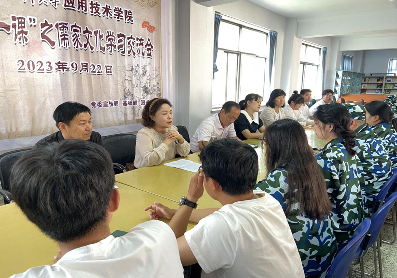 9月22日下午,我院在图书馆举办中华优秀传统文化之“儒家文化”学习交流会。学院党委副书记段庆臻出席活动,宣传部、图书馆、基础部相关负责人及2022级、2023级学生共100余人参加活动。