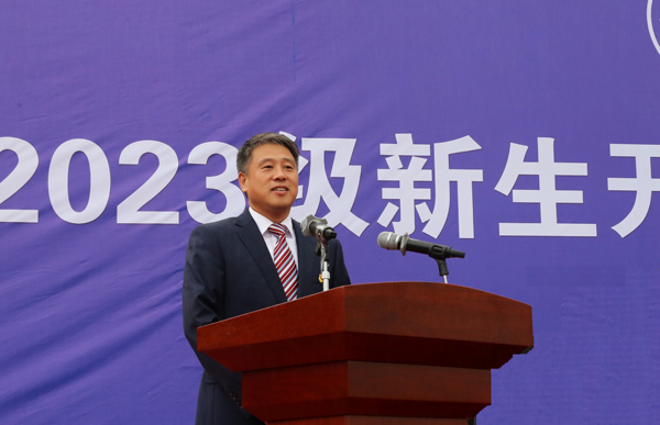 李智军在讲话中对1738名2023级新同学的到来表示热烈的欢迎和由衷的祝贺。他寄语新生们要牢记嘱托,以家国情怀为思想铸魂。坚定理想信念,坚持人民立场,勇敢地担负起时代赋予的历史责任,塑造青春最美的模样;要崇德修身,以新风正气涵养精神与品格。从红色基因中汲取自信坚毅和接续奋斗的磅礴力量,崇德向善,内外兼修,做社会道德的守护者和社会风尚的引领者;要学有所成,以真本领践行强国有我的誓言。把握住大学的美好时光,培养良好的学习习惯,积累知识、锻炼能力,让青春、理想闪烁出耀眼的光芒。