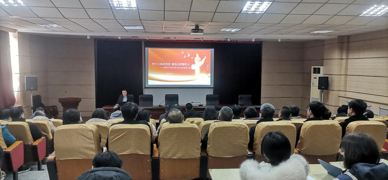 3月11日,学院党委副书记(主持工作)王晋清在119报告厅讲授专题党课。全院科级以上干部、全体教工党员及新入职教职工参加学习。